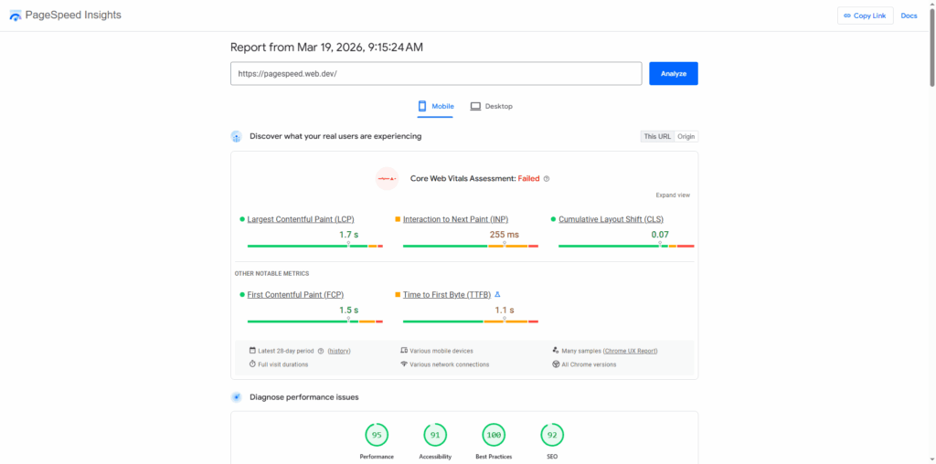| Google PageSpeed Insights | Technical SEO | Free | Core Web Vitals |
